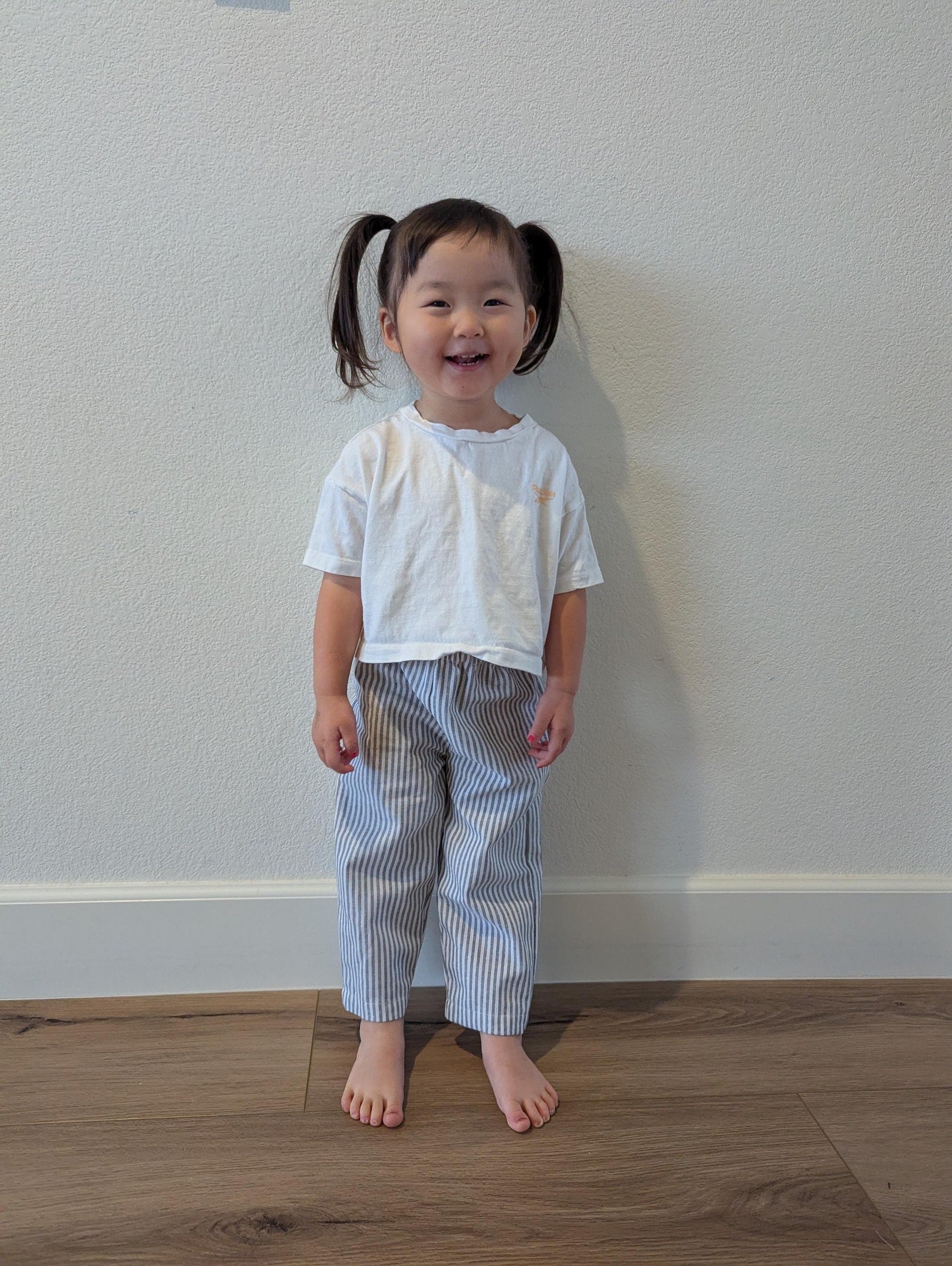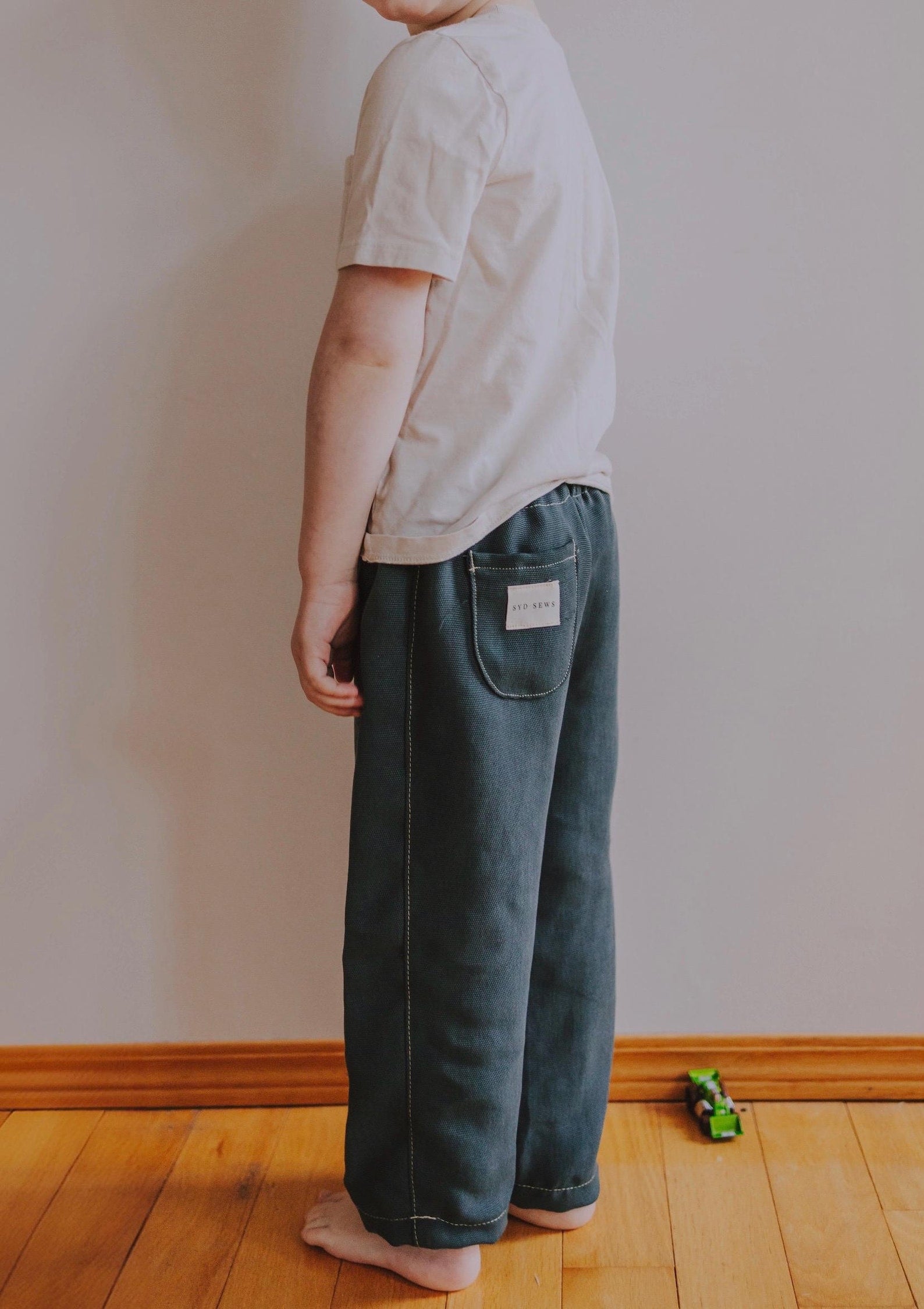 The Clover Pants is a digital sewing pattern for relaxed, everyday pants with an elastic waistband. Designed for woven fabrics, it offers a unisex fit and is perfect for play, outings, or layering.