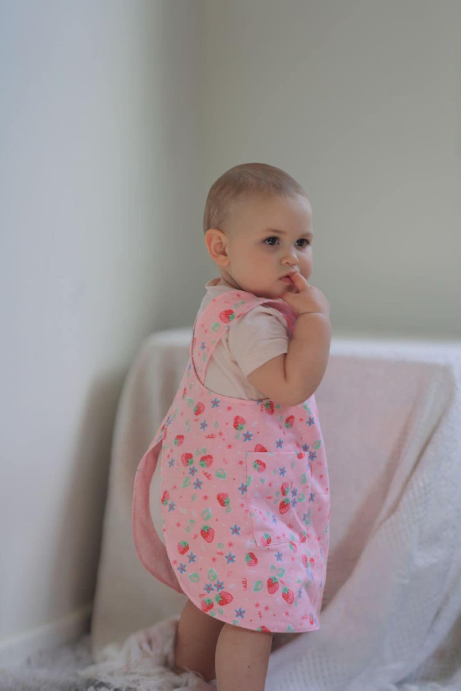 The Olive Apron is a digital sewing pattern for a fully lined, cross-back apron featuring two practical front pockets. Designed for a comfortable fit, it’s perfect for everyday play, kitchen help, gardening, or crafting. Suitable for little adventurers aged 12 months to 6 years.